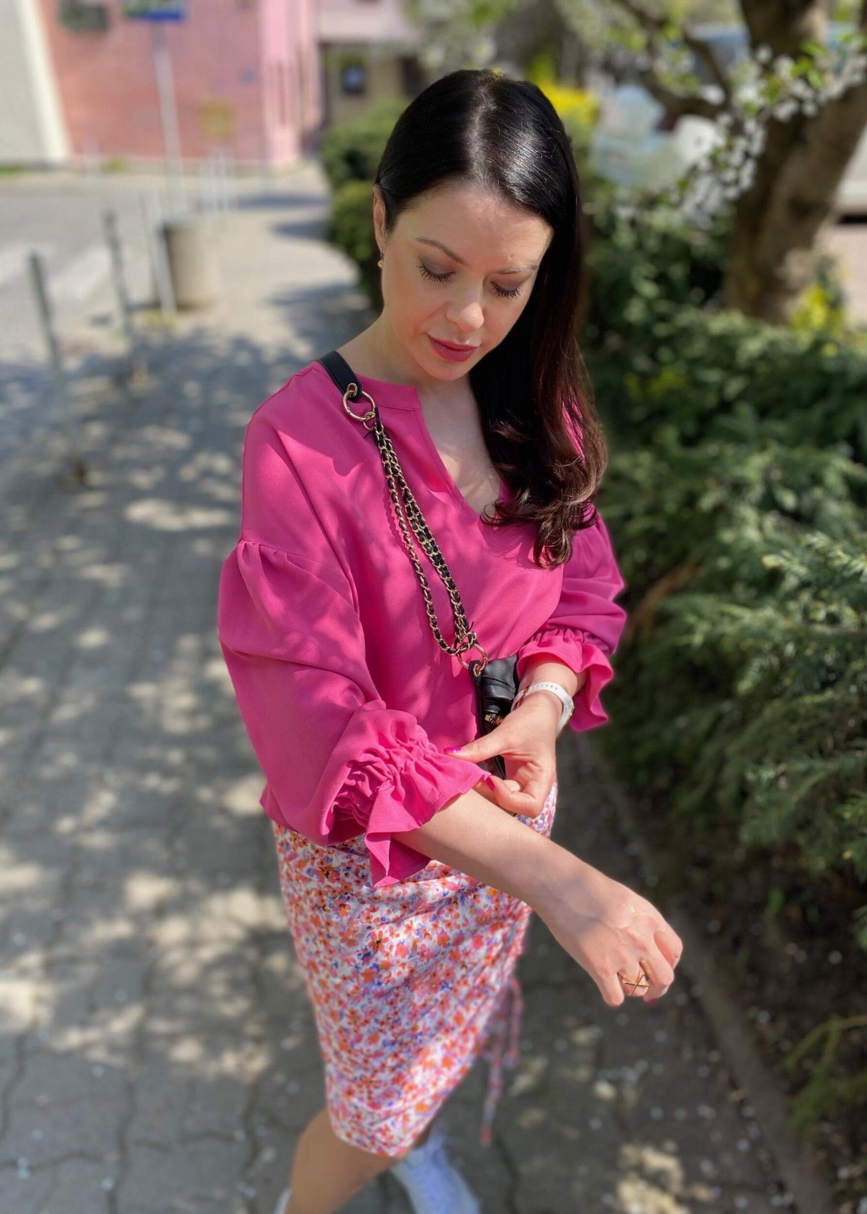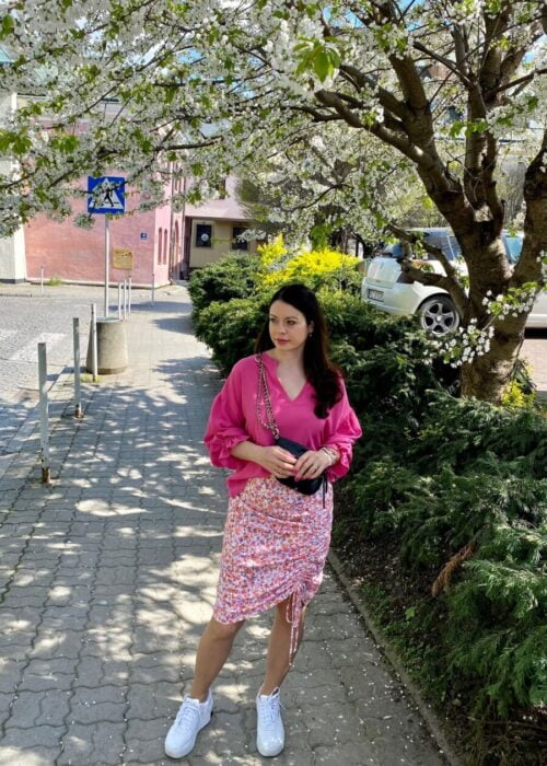 Niebieska rozkloszowana spódnica czerwonym paskiem w intensywnym kolorze to prawdziwy klejnot letniej garderoby. Jej ozdobny print w soczystych kolorach przyciąga wzrok i dodaje energii każdej stylizacji. Spódnica została wyposażona w praktyczne, ozdobne kieszenie, które łączą funkcjonalność z modnym wyglądem. Dodatkowym atutem jest długi, czerwony pasek do wiązania, który podkreśla talię i wprowadza odrobinę kontrastu do całości. Idealna zarówno do pracy, jak i na co dzień, spódnica doskonale komponuje się z letnimi klapkami czy sportowym obuwiem, tworząc wygodne i stylowe zestawienia. Jej piękny fason zwraca uwagę i sprawia, że każda kobieta poczuje się w niej wyjątkowo. To idealny wybór na gorące dni, kiedy chcesz wyglądać modnie i czuć się komfortowo.